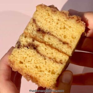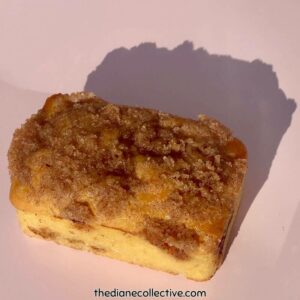 This recipe is unique in that I took the elements of three separate recipes to make this coffee cake. They’re all by Scientifically Sweet and I have adjusted the amounts to perfectly fit my beloved mini silicone loaf molds.